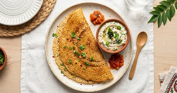 - Serve the dosas hot with the coconut chutney on the side.