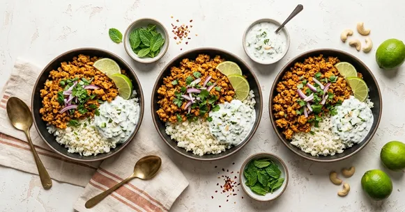 Freeze for longer storage. While the refrigerator keeps these bowls fresh for five days, you can freeze the keema and cauliflower rice separately for up to three months. Freeze in individual portions for easy defrosting. The coconut mint raita does not freeze well — make a fresh batch each week instead, which takes only two minutes.