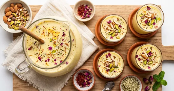 The best part is the batch-prep design. You will make a concentrated thandai paste from toasted nuts, seeds, and freshly ground spices, then blend it with almond milk and cream into a pitcher that keeps beautifully in the refrigerator for up to five days. Each morning — or whenever the craving strikes — you simply pour, stir, and enjoy. It is equally wonderful served ice-cold on warm afternoons or gently warmed in a saucepan on cooler evenings.