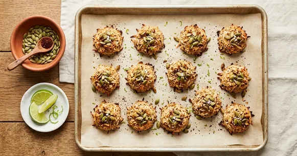 Imagine biting into a chewy, golden-toasted coconut candy that melts on your tongue with waves of warm ancho chile, bright lime zest, and the buttery crunch of toasted pepitas. These Mexican-inspired cocadas — the beloved coconut confections found at mercados and street stalls across Latin America — are reimagined here as a fully vegan, keto-friendly treat that satisfies every sweet craving without a single gram of sugar. The edges are lightly caramelized and crisp while the center stays dense and fudgy, delivering that irresistible macaroon-meets-candy texture that makes traditional cocadas so addictive.