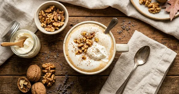 Make toasted walnut butter for an even faster version. Air fry a full cup of walnuts, then blend them into walnut butter in a food processor with a pinch of salt. Store in a jar in the fridge for up to two weeks. When you want your latte, simply dissolve 2 tablespoons of walnut butter in hot water and blend with mascarpone and cream — it takes under 3 minutes.